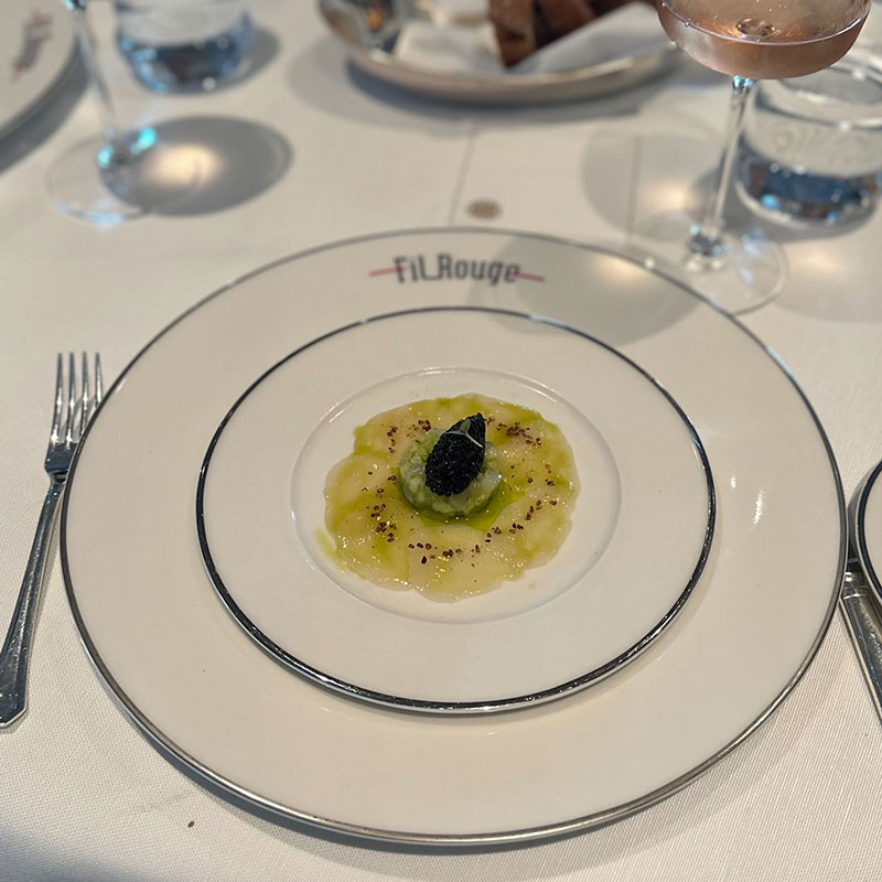 Die erste Nacht verbrachten wir noch im Hafen von Lissabon. Nach einem Glas Champagner zum Sonnenuntergang in der Sky Bar wurde ich im Restaurant Anthology willkommen geheißen – ein echtes Fine-Dining-Erlebnis. Dort servierte man mir ein mehrgängiges Menü, kreiert von einem Gastkoch, der portugiesische Aromen mit kreativer Finesse verband: Oktopus-Carpaccio mit Safranemulsion, gefolgt von in Portwein geschmortem Lamm – perfekt begleitet von einem portugiesischen Rotwein aus dem Alentejo.